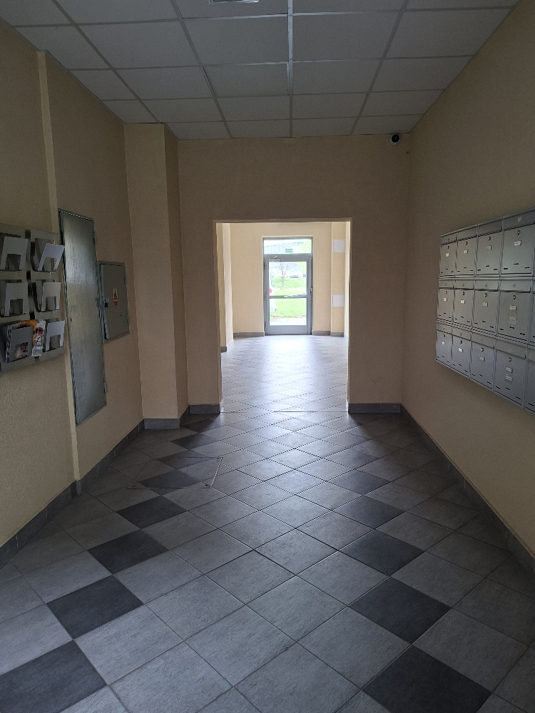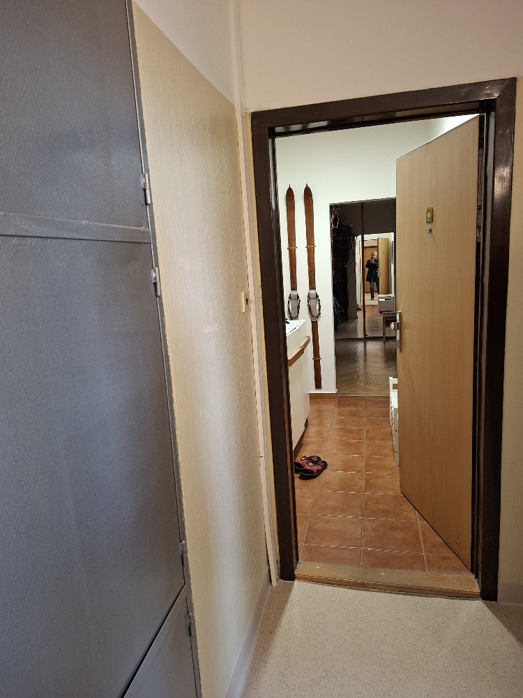 Byt je prístupný 2 novými výťahmi cez spoločnú uzamykateľnú chodbu. Dobrá dispozícia bytu, všetky miestnosti bytu sú prístupne z predsiene alebo haly. Z obývacej izby je prístupná loggia a tiež kuchyňa.