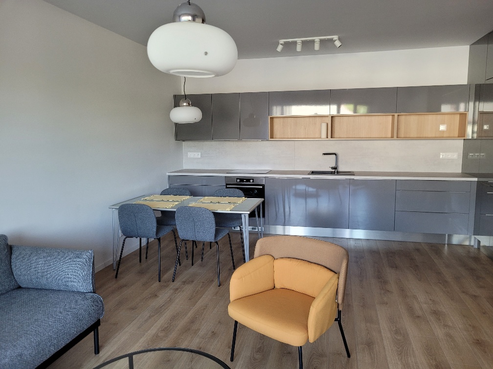 Nový, priestranný, svetlý 3 izbový byt sa nachádza na 1. poschodí polyfunkčného domu na Bazovej ul. Byt je čiastočne zariadený, s kompletne vybavenou kuchynskou linkou so elektrospotrebičmi (indukčná doska, digestor, sporák, umývačka riadu, chladnička s mrazničkou). Byt má obývaciu izbu spojenú s kuchynskou a jedálenskou časťou (29 m2), z chodby (10 m2) kde je šatníková skriňa sú prístupné 2 izby (16 m2) so skriňou a (13 m2). Byt má 1 kúpeľňu s vaňou, sprchovacím kútom a WC a tiež samostatné WC. Loggia má 4,3 m2.