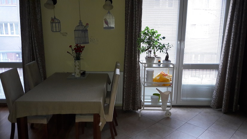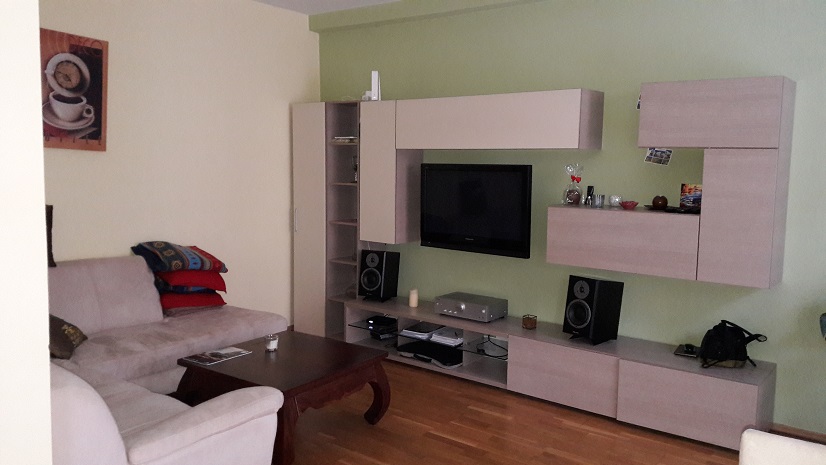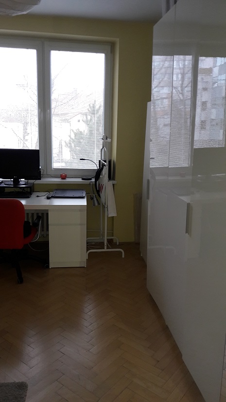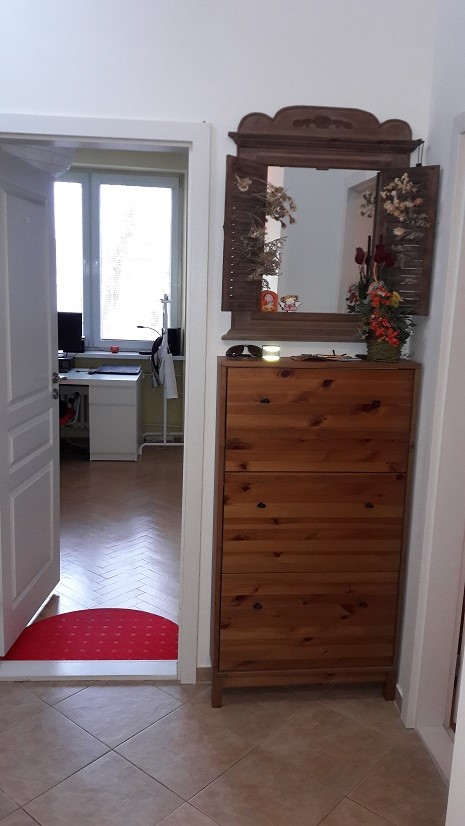 Ide o zrekonštruovaný, udržiavaný byt zariadený nábytkom. Byt má kuchyňu voľne spojenú s jedálenskou časťou a obývacou izbou. Príslušenstvom je predsieň, WC, kúpeľňa a priestranná loggia s výhľadom do dvora. Nachádza sa na 1. poschodí s výťahom a je orientovaný na dve strany V – Z. Kuchyňa je zariadená nábytkom a spotrebičmi – chladnička s mrazničkou, umývačka riadu, obývačka je zariadená vč. TV. V spálni je vstavaná skriňa, postel, v druhej izbe je veľká skriňa, bez postele. Celková výmera bytu je 78 m2. Parkovanie je možné v ulici pred domom.