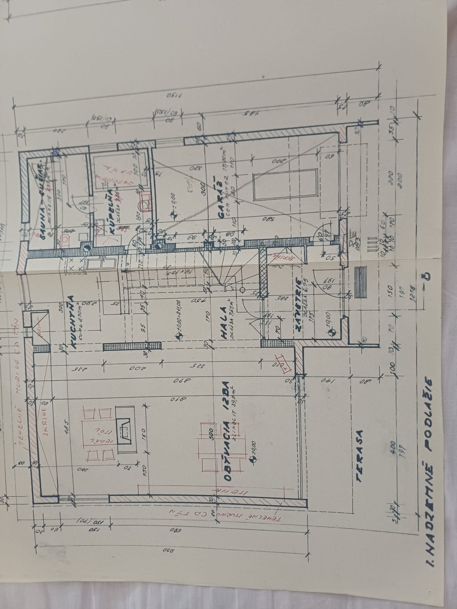 - 1.PP (suterén) – pod garážou je pivnica o výmere 17 m2, slúži ako úložný priestor a miesto pre bojler na teplú vodu