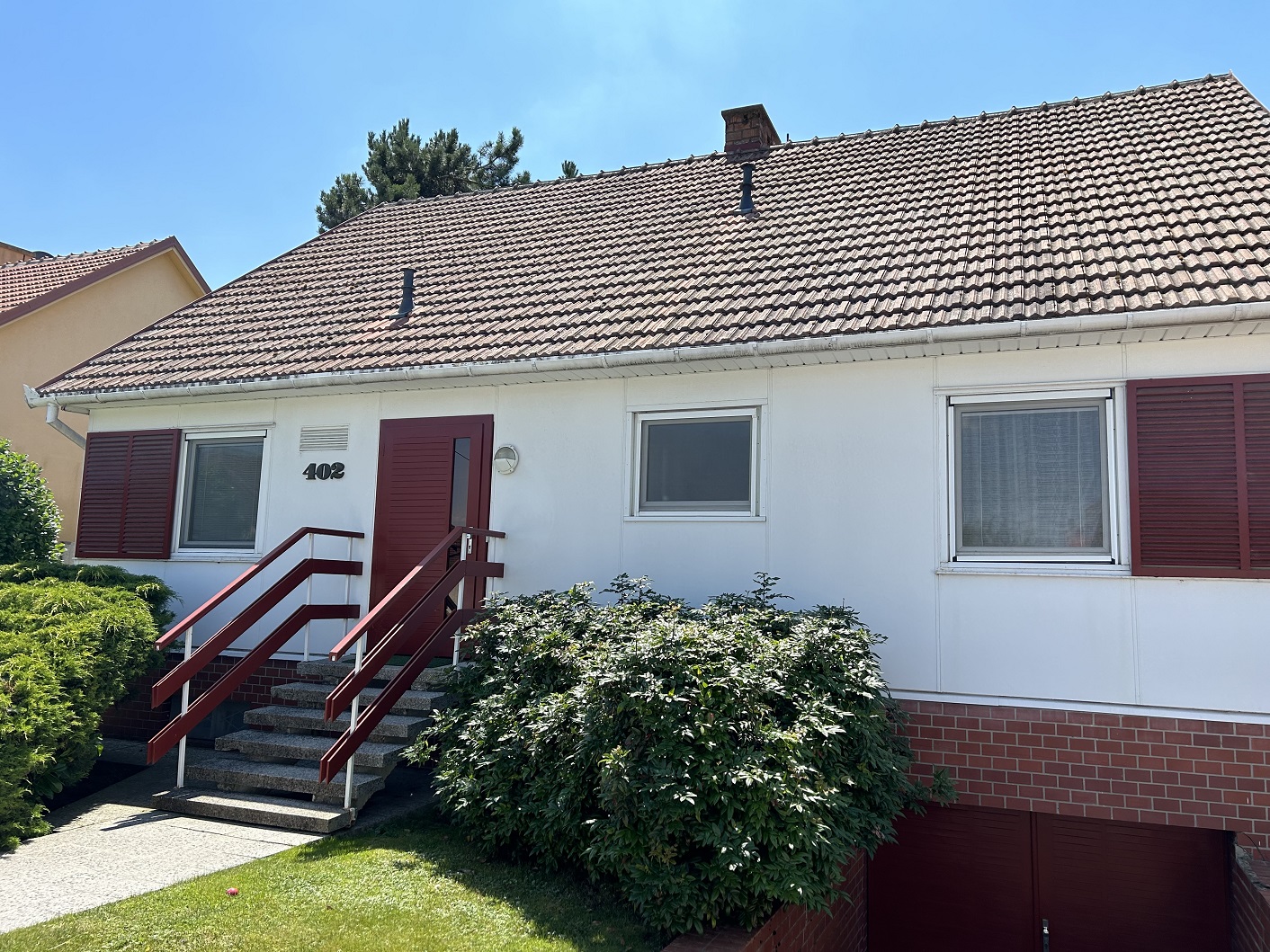 Samostatne stojaci rodinný dom stojí na rovinatom, oplotenom pozemku obdĺžnikového tvaru (17 x 47 m), ktorého veľkosť je 800 m2. Dom je plne podpivničený, s jedným nadzemným podlažím (prízemie) a povalou. Ide o montovaný RD typu OKÁL (drevotrieskové izolované veľkoplošné panely), v užívaní je od r. 1975. Zastavaná plocha domu je 117,36 m2 + terasa 15 m2, celková úžitková plocha je 193,85 m2 + povala